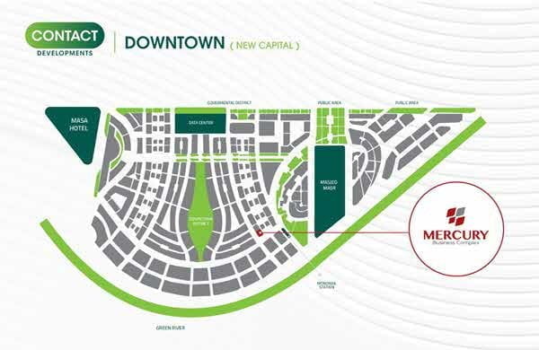 اقامت شركة كونتكت للتطوير العقاري مشروعها التجاري الاول ميركوري مول العاصمة الادارية على مساحة 2800 متر بمنطقة الداون تاون ويقع ميركوري على شارع رئيسى 70 متر يفصل بينة وبين الابراج السياحية ،والمشروع عبارة عن دور أرضي + 10 أدوار متكررة عبارة عن :-